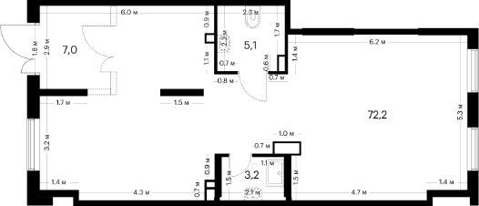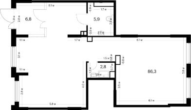 Общая площадь 58 м. кв.