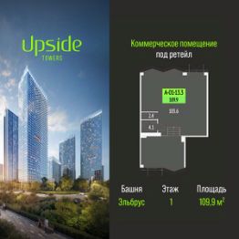 Уникальное коммерческое помещение под ретейл площадью 109.9 м² в сверхкварталеUpside Towers.
