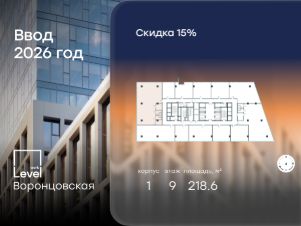 Продаётся помещение площадью 218.60 кв. м в Level work Воронцовская (...