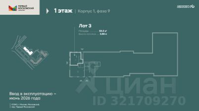 Продажа помещения свободного назначения 62,51 кв.м на 1-м этаже ЖК "МФК Тропарево Парк" в строящемся корпусе 2.2. Срок сдачи: IV Квартал 2025 года.