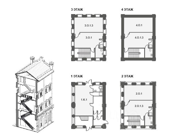 На 1-й этаж 2 отдельных входа: с фасада и с торца.