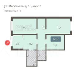 Коммерческое помещение площадью 88.9 м², расположено по адресу: г. Москва, улица Маресьева, 10к1, помещение 14Н, район Некрасовка. Объект занимает 1 этаж в здании с этажностью 17 этажей. Помещение без отделки, свободного назначения, имеет отдельный вход.