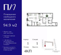 Продается помещение свободного назначения в ЖК премиум класса ЖК Преображенская площадь.