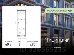 Продаётся помещение свободного назначения площадью 60,5 кв. м в элитном квартале "Тишинский бульвар".