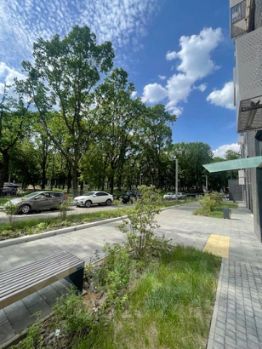 Отдельный вход, фасадное окно с видом на парк и удобным пешеходно-транспортным потоком.