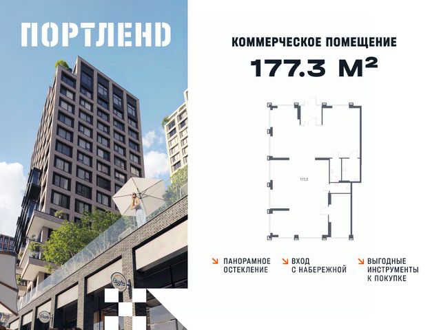 Помещение в строящемся проекте бизнес-класса PORTLAND от девелопера FORMA на 1576 квартир. 10 минут пешком от метро Печатники на первой береговой линии Москвы-реки с открытым подходом к воде, мариной для яхт и открытым понтонным бассейном.