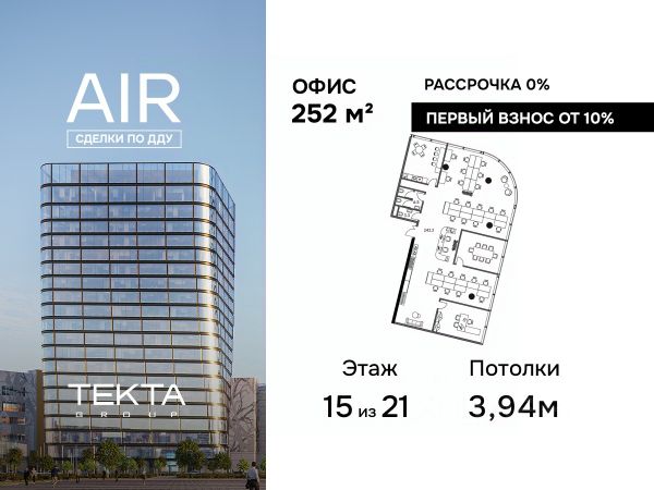 Продается помещение свободного назначения 252.00 м² на 15 этаже бизнес-центра AIR.