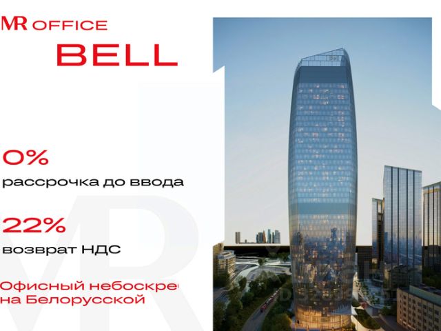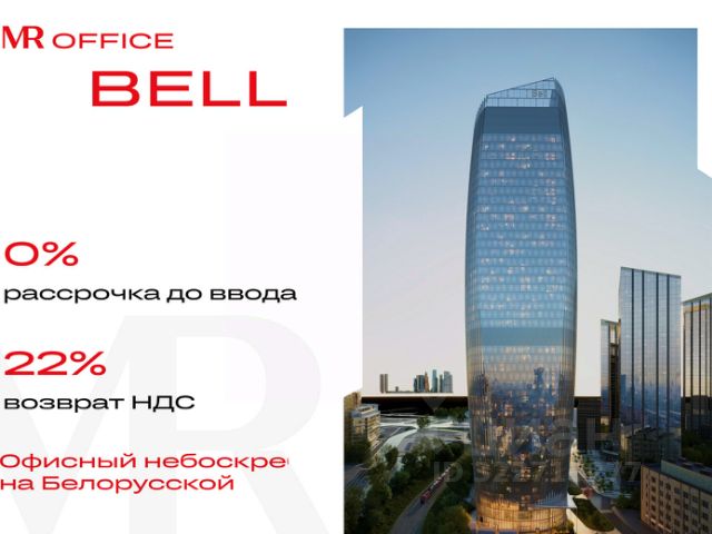 Продается офисное помещение 280.41 м² на 12 этаже в новом небоскребе класса Prime — БЦ BELL на Белорусской от бренда MR Office.