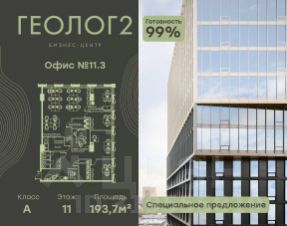 Продаётся офисное помещение площадью 118.71 м² на 2 этаже в новом бизнес-центре SET в башне K1.