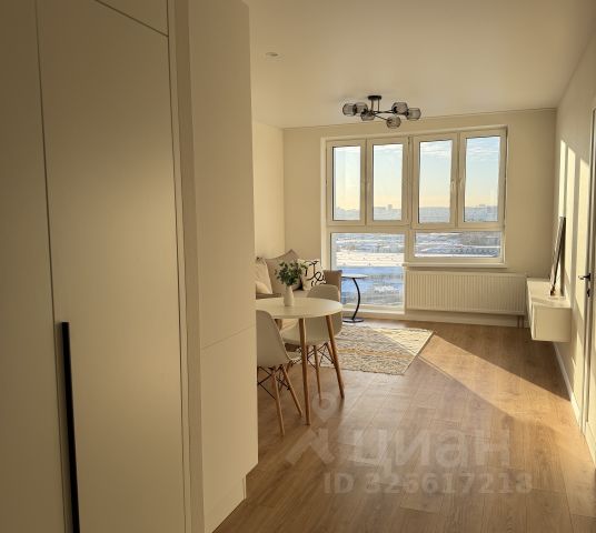 Общая площадь - 43 кв.м. Квартира видовая на высоком 20м этаже 24х этажного дома. Светлая, теплая. Вид из окон панорамный, застройки перед окнами нет.