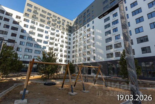 Квартира находится на третьем этаже монолитного дома, построенного в 2024 году. Дом пятиэтажный, с грузо-пассажирским лифтом, мусоропроводом и благоустроенной территорией. Во дворе — современные детская и спортивная площадки, а парковка организована по периметру. Сам комплекс реализует концепцию двор без машин и ведет строительство пяти многоуровневых паркингов на 1850 мест, что делает пространство безопасным и комфортным.