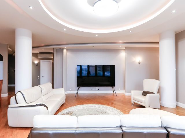 Стены - все выровнены, текстильные обои. Потолки везде выровненные белые (в 1 зоне - натяжной).