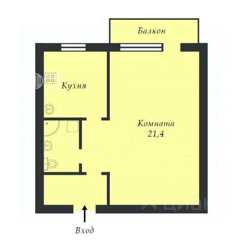 Квартира состоит из изолированных просторных комнат 18,4 м и 10,7 м, кухни 6м, раздельного санузла и ванной.