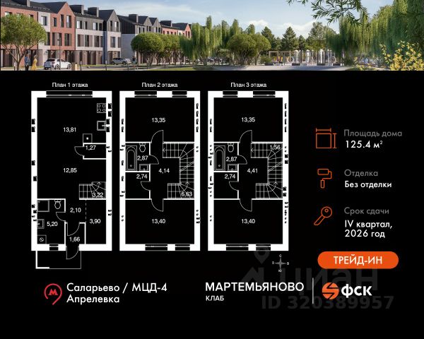 Приглашаем вас в Каскад парк приобрести таунхаус, живя в котором, Вы будете наслаждаться комфортом загородной жизни! Наш таунхаус - большая квартира фактической площадью 120 кв.м на своем участке. Расположение самой квартиры в доме и поселке крайне удачное. Мы находимся в первой очереди, в уютном тупиковом дворике, а это и тишина, и комфорт, и удовольствие. Именно на нашей территории функционирует большая муниципальная школа, магазины, салон красоты, аптека и семейный клуб с множеством занятий. Большой рыболовный клуб и рыбный ресторан в шаговой доступности. Таунхаус без отделки, свободной планировки на первом этаже которого можно расположить просторную кухню-гостиную и санузел. Второй этаж может вместить в себя две уютные спальные комнаты, гардеробную, ванную комнату и санузел. На третьем этаже может быть просторная мастер-спальня с гардеробной и санузлом. Или пространство для места отдыха всей семьей. Имеется придомовая территорий 0,5 сотки с парковкой, местом для мангальной зоны! Поселок охраняется. Записывайтесь и приезжайте на просмотр нашего таунхауса! С удовольствием поделюсь с вами полезной информацией о жизни в поселке и сориентирую о возможной планировке!