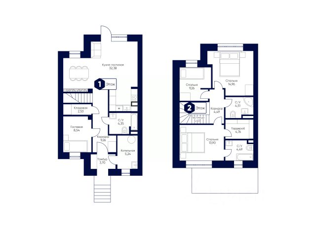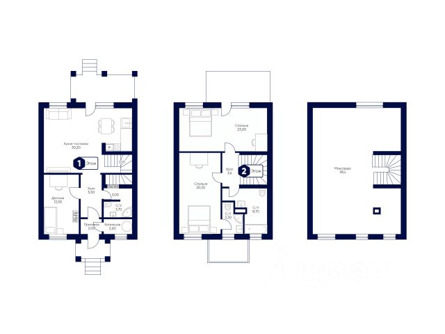 1 этаж: кухня-гостиная, гардероб, 1 с/у