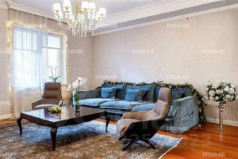 Гостиная: совмещает в себе зону столовой и отдыха, высокие потолки, камин (3 стороны обзора, 2 стороны загрузки дров) и прилегающая зона отделаны натуральным мрамором, подоконники из натурального мрамора с включениями аммонитов, витраж ручной работы, сделанный на заказ, между кухней и гостиной, система звука Monitor Audio, выход во внутренний двор;