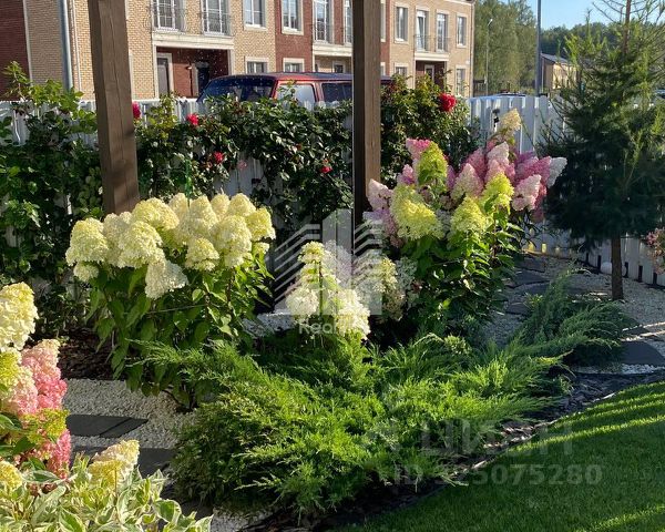 На участке с ландшафтным дизайном расположены два строения - таунхаус площадью 181 м2 и деревянная баня из сруба 124 м2, оба строения двухэтажные и могут использоваться для круглогодичного проживания.