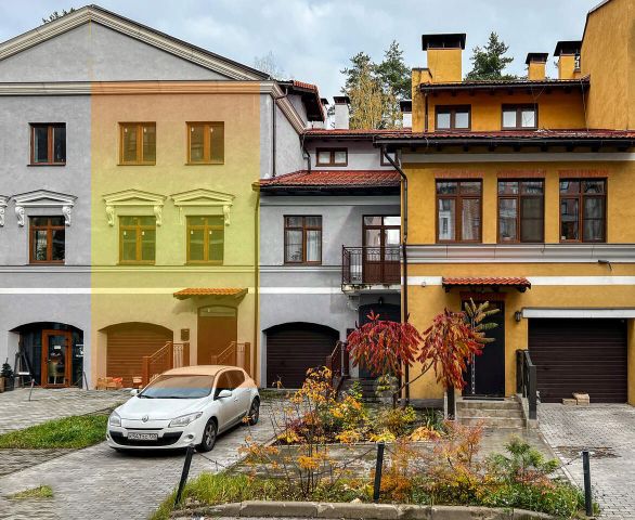 Объект 1143. Продается единственный таунхаус в ЖК "Пятницкие кварталы" общей площадью 135 м2 на участке земли 0,8 соток со всеми центральными коммуникациями. Таунхаус имеет 3 этажа, теплый гараж, участок земли на заднем дворе и парковку на два автомобиля перед таунхаусом. Планировка включает в себя: 1 этаж: большую прихожую с нишей под встроенный шкаф, гостевой сан.узел, кухню-столовую с выходом на участок и теплый гараж, в который можно сделать вход из дома. В кухне-столовой возможно оборудовать камин, так как шахта для этого предусмотрена. Со своего участка есть прямой выход в лесную часть района для прогулок или выгула животных. 2 этаж: две большие спальни с выходом из одной на балкон, а также сан.узел. В спальне, которая имеет выход на балкон также можно оборудовать естественны камин. 3 этаж: мастер-спальня сов оим сан.узлом. В сан.узле есть окно с видом на участок. Высота потолков на 1 и 2 этаже 3 метра, на 3 этаже 4,9 метров, что дает возможность увеличить площадь дома, возведя на 3 этаже антресольный этаж. Теплый гараж можно использовать в качестве помещения под ведение бизнеса, что уже делают в соседних таунхаусах. Территория жилого комплекса имеет всю необходимую инфраструктуру с магазинами, салонами и прочей коммерцией. А шолы и детские сады находятся в пешей доступности от дома. Остановка до метро Пятницкое шоссе находится в 5 минутах пешком от таунхауса. Обременений нет, в собственности с 2017 года, покупали по ДДУ. Звоните для записи на показ!