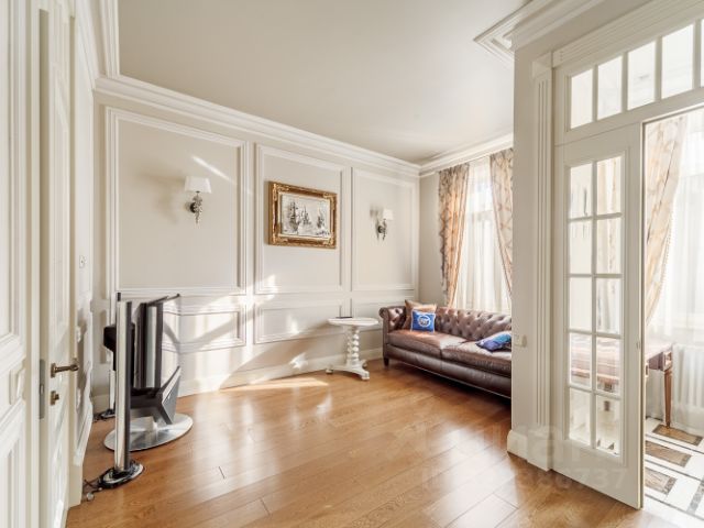 Номер в базе: J11916. Дуплекс, площадью 370 кв.м. расположен в одном из самых красивых поселков Подмосковья и прекрасно подойдет для загородной жизни. В каждой детали поселка, можно узнать следование канонам французского города Довиль. Красочные фасады домов выполнены в нормандском стиле по индивидуальным проектам. Изысканность прослеживается и в интерьере этого изумительного дуплекса - изящные элементы отделки, высокие потолки, лепнина. Планировка хорошо продуманна, а материалы использованные в отделке, исключительно премиальные. При входе есть вместительная гардеробная, система хранения, организованы кладовые помещения, постирочная и комната для персонала. На первом этаже располагаются две уютные гостиные, объединенные общим пространством. Большая кухня-столовая со свечным камином и стеклянными витринами укомплектована техникой Smeg и имеет свой выход на летнюю террасу с зоной готовки. Весь второй этаж занял мастер-блок с большой гардеробной и эффектной ванной комнатой, просторный кабинет и комната с балконом. А на третьем, мансардном этаже, расположились две чудесные спальни со своими санузлами, отделанными разными сортами мрамора и испанской плитки. Красивые люстры обрамляют потолок и стены, на полу уложена дубовая доска. Элегантная лестница из мрамора и травертина, с теплой подсветкой, завершает целостность этого уютного пространства. В помещениях установлены системы видеонаблюдения, охраны и пожарная сигнализация. Мансарда: две детские спальни с индивидуальными с/у Цоколь: полуцокольное помещение: котельная, кладовая, комнаты для хранения, комната для персонала Этаж 1: гардеробная, две гостиных, кухня-столовая, с/у Этаж 2: мастер- этаж: спальная, гардеробная, ванная комната с балконом, кабинет с балконом, кабинет. Дополнительные строения: гараж м\м, доп. строения, помещение для персонала