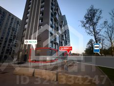 Большая парковка перед фасадом. Рядом остановка общественного транспорта. Интенсивный пешехо...