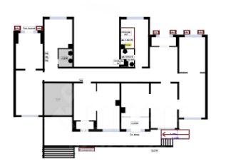 Помещение расположено в многоквартирном 12-этажном доме на 1 этаже. Имеется четыре отдельных входа. Два с улицы и два со двора.