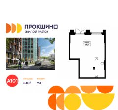 Продается торговое помещение площадью 61.80. на 1-м этаже ЖК "Прокшино".