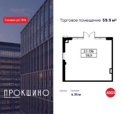Продажа торгового помещения 74,9 м2 по адресу Прокшинский проспект, д. 12 (10 минут пешком от метро Прокшино). 1 линия домов.