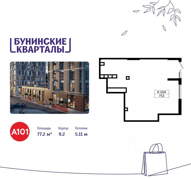 1015233 . Предлагаем помещение свободного назначения формата street-retail в ЖК "Бунинские кварталы", площадью 299.1 кв. м, расположенное на первом этаже 19-этажного жилого дома. Корпус: 9.1. Без комиссии для покупателя.