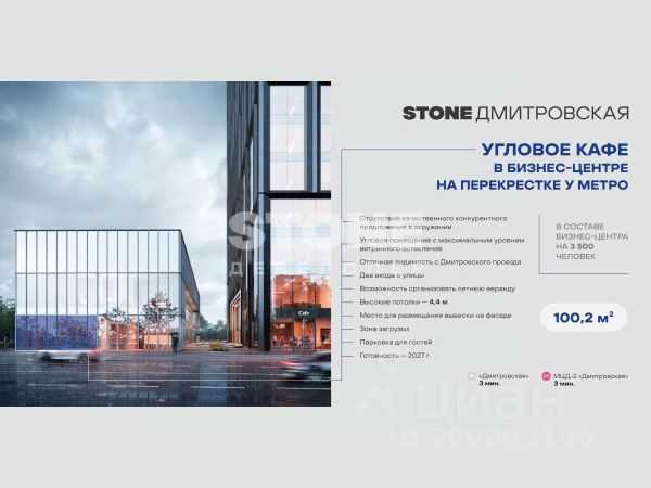 В реализации - торговое помещение в составе бизнес-центра класса А STONE Дмитровская напрямую от девелопера STONE, лидера офисного рынка. Первый бизнес-центр класса А в локации м. "Дмитровская".
