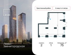 Продаётся торговое помещение площадью 75 кв. м. в новостройке Левел Звенигородская по адресу Москва, СЗАО, Хорошево-Мневники, 3-й Силикатный проезд, вл. 6, корп. 2. Помещение со свободной планировкой. Окна с видом во двор. Высота потолков 6.75 м. Отдельный вход с...