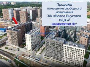 947410. Предлагаем помещение свободного назначения в ЖК "Новое Внуково", площадью 116.8 кв. м, расположенное на первом этаже 10-этажного жилого дома. Без комиссии для покупателя.