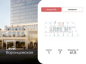 Продаётся помещение площадью 61.50 кв. м в Level work Воронцовская (...
