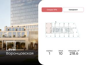 Продаётся помещение площадью 218.60 кв. м в Level work Воронцовская...