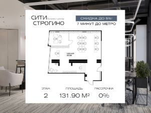 В продаже от застройщика комфортабельный Smart-офис площадью 131.9 м² на 2 этаже в премиальном бизнес-центре Сити Строгино. Срок сдачи - 2028 год.