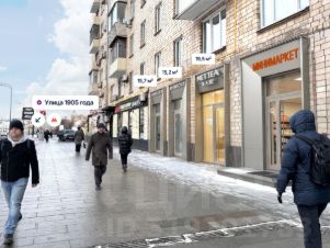 Лот: 38444. Помещение свободного назначения формата Street Retail в ЦАО Москвы. 5 минут пешком до станции метро улица 1905 года. Первая линия домов. Выезд на Звенигородское шоссе. Плотный жилой массив. Рядом остановка общественного транспорта.