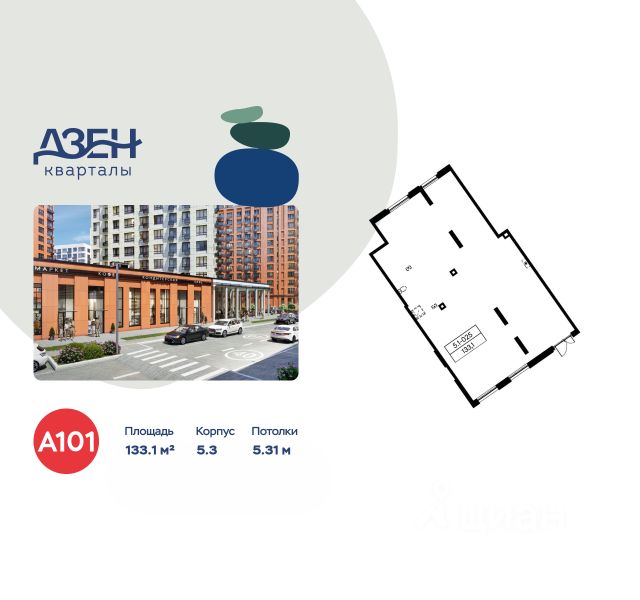 Продается торговое помещение площадью 133.10. на 1-м этаже ЖК "Дзен-кварталы".