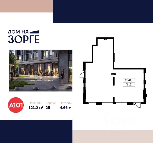 Продается торговое помещение площадью 121.20. на 1-м этаже ЖК "Дом на Зорге".