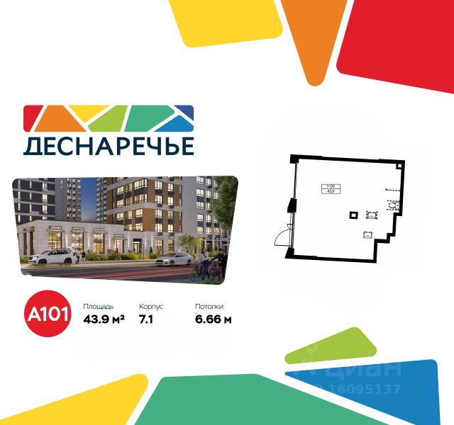 Продается торговое помещение площадью 43.90. на 1-м этаже ЖК "Деснаречье".