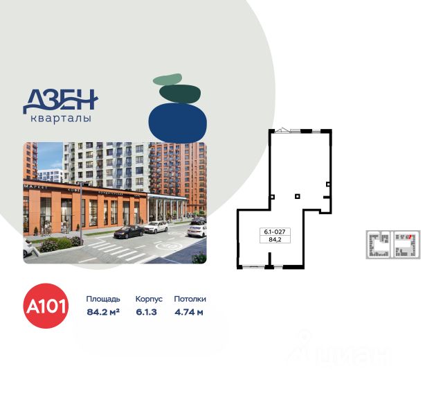 Продается торговое помещение площадью 84.20. на 1-м этаже ЖК "Дзен-кварталы".
