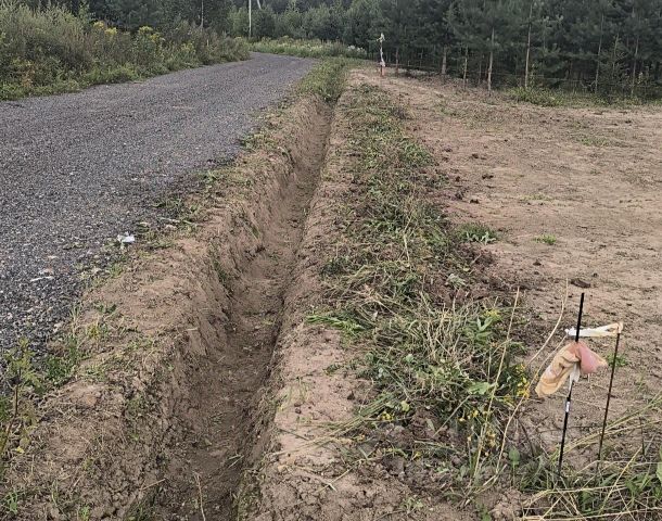 Участок на небольшой возвышенности на 2-ой линии от леса и обращён к нему лицевой стороной. Грунт выровнен, верхний плодородный слой почвы сохранён. Посаженные растения: туи (12 шт.), смородина чёрная (4 куста), крыжовник (3 куста), жимолость и ежевика.