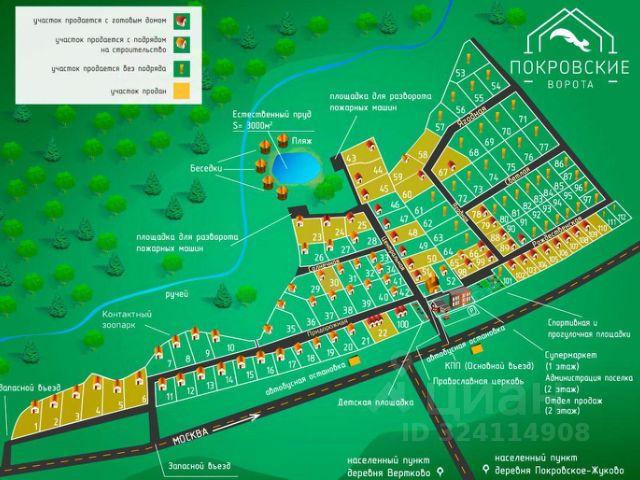 - богатый выбор красивых участков от 6 20 соток с подрядом и без (155 участков первой очереди): на поляне, на холме, с лесными деревьями, с собственным выходом в лес, уединенной части поселка. Категория земель дачное строительство с возможностью возведения дома и прописки в нем. Все участки прошли межевание.