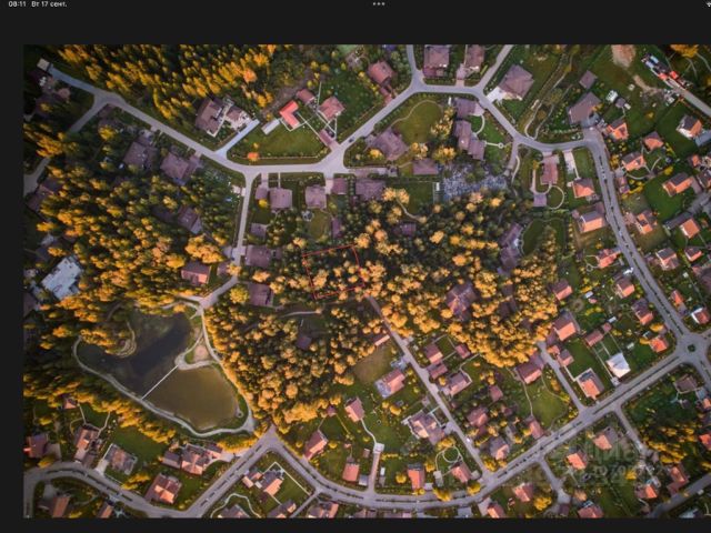 Участок правильной формы площадью 25 соток - лесной, растут взрослые вековые сосны. Участок находится около водоема, в центральной части поселка. Все коммуникации центральные: газоснабжение, холодное водоснабжение, электроснабжение, канализация, в том числе и ливневая.