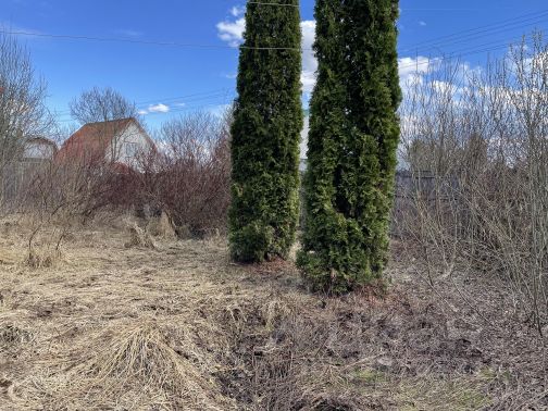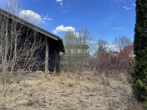 Небольшой участок, 6 соток, недалеко от Звенигорода, рядом лес, ж/д станция "Скоротово" в получасе ходьбы, на участке кустарники и плодовые деревья, недостроенный дом