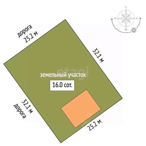 Участок ровный, сухой, соседи по одной стороне. На участке растут яблони, вишни, декоративные кусты, туи, имеется несколько грядок с зеленью и клубникой и большой цветник.