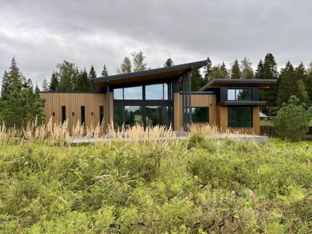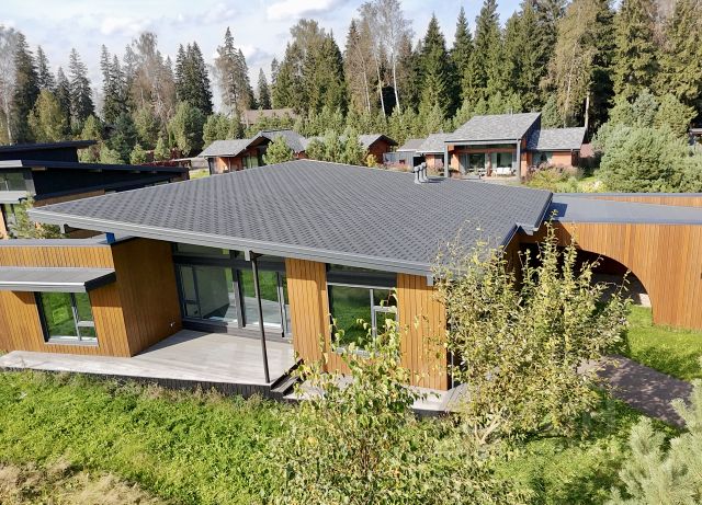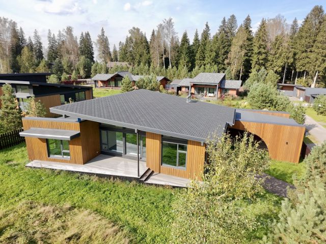 Продается новый, современный дом. Над созданием работали архитектор и дизайнер. это индивидуальный проект. Право собственности оформлено менее 5 лет назад. Дом продаётся без внутренней отделки (опциональная возможность работ по отделки дома). Подключены все инженерные сети. Домовладение общей площадью 290 кв.м, отапливаемая площадь 145 кв.м, во всем доме панорамные энергоэффективные окна. Планировкой предусмотрены кухня-столовая, большая гостиная (потолки 3/5 м) с выходом на террасу, гардеробная, котельная, 3 спальни, 3 с/у. По южной стороне дома огромная полуоткрытая терраса из лиственницы 70 кв.м. Построена крытая парковка\навес 60 кв.м. для авто, мото и вело техники В доме сделаны все наружные работы; качественное утепление, заведены коммуникации, сделаны; терраса и настил. Все материалы импортные, высокого качества. Дом расположен на участке 15,5 сот. На участке высажены сосны. Есть возможность купить соседний участок с домом. Через участок начинается Гослесфонд. Все коммуникации в поселке центральные (газ, электричество 15 Квт, водоснабжение, канализация). Централизованно проведён оптико-волоконный интернет. Кот. поселок основан в 2004 году, ВСЕ дома вокруг построены, покупателю не придется жить в атмосфере стройки. Единая современная архитектурная концепция. В поселке созданы все условия для безопасного и комфортного проживания в любое время года. Поселок полностью огражден забором, на въезде организован пропускной пункт, профессиональная охрана. Все дороги в поселке освещены и заасфальтированы, асфальт прямо до домовладения. На территории поселка есть три декоративных водоема, детская и спортивная площадки. ТСН поселка организует уборку дорог и вывоз мусора круглогодично. Ритейлеры/интернет-магазины осуществляют доставку в наш коттеджный посёлок. Коттеджный посёлок "Домик в лесу" находится в экологически чистом районе к северу от Москвы, генпланом здесь не предусмотрено строительство никаких пром. объектов. Поселок окружен лесным массивом Гослесфонда, сосны, ели, дубы, липы, берёзы. Недалеко расположены горнолыжные курорты, картодром. На территории поселка ранее располагались усадьба русского художника В.М. Васнецова, а позже пионерский лагерь "Березки". в 20 минутах езды находится усадьба Абрамцево С.И. Мамонтова, это место силы притягивало известных русских художников, творческих людей. Дмитровское направление отличается тем, что очень многие творческие личности издавна выбирали его для жизни и творчества. На авто время в пути до нашего поселка примерно один час.