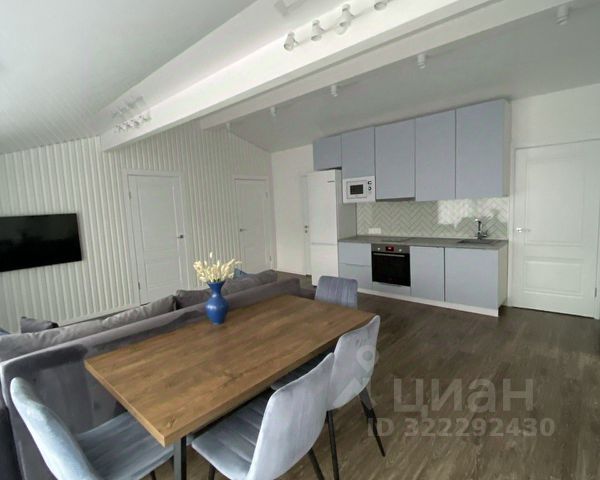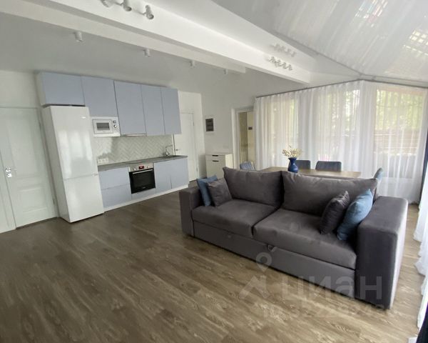 Просторная кухня-гостиная с большими окнами в пол с прекрасным видом на территорию, выход на террасу. Кухня полностью укомплектована, новый духовой шкаф, индукционная варочная панель на 4 конфорки, вытяжка, посудомоечная машина на 12 комплектов посуды, холодильник двухкамерный.