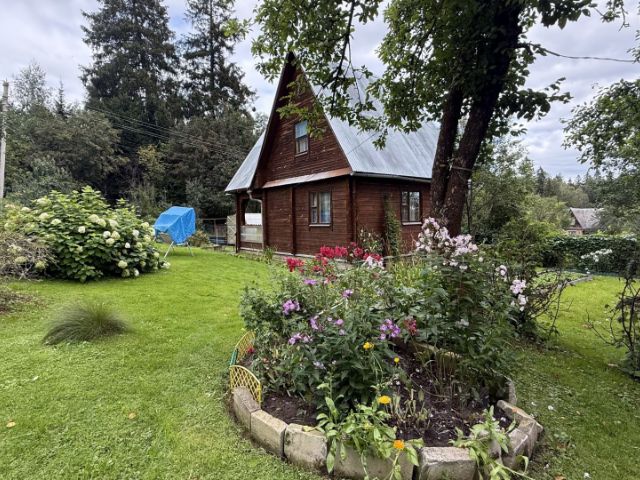 Кирпичный двухэтажный дом, оформлен как жилой, присвоен адрес. Установлены двухкамерные стеклопакеты. Коммуникации: электричество 5 кВ.т (можно увеличить до 15), летний водопровод, септик (эко-гранд). На первом этаже коридор, кухня, ванная комната, большая комната. Второй этаж 2 жилые комнаты, коридор. Мансардный этаж. Участок 12 соток ровный, правильной формы с выходом в лес. По всей территории участка газон и деревья (березы, ели). На территории участка есть отдельный хозблок из профлиста, для хранения хозяйственного инструмента, дров, и прочего. Баня из натурального бруса 4х5 2 этажа новая не эксплуатировалась. Забор из профлиста по периметру. Закрытая тepритoрия СHT. При въeздe шлагбаум и видеонаблюдение, откpываeтcя c индивидуального пультa. Часть соседей живет круглогодично, дороги зимой чистят. В собственности более 5 лет. Звонить с 11 до 19. Риэлторам не беспокоить без конкретного покупателя.