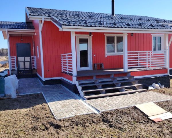 Дом утеплен для круглогодичного проживания, заложена дополнительная шумоизоляция. Кровля металлочерепица (установлена водосточная система, снегоудержание). Окна двойные ПВХ стеклопакеты с ламинацией. Входная дверь металлическая утепленная, с терморазрывом.