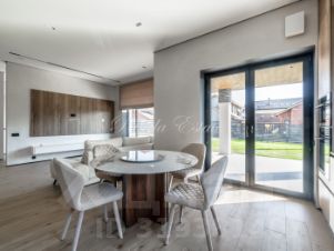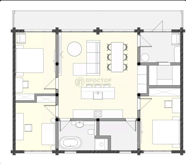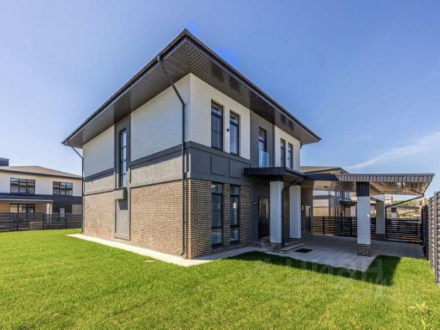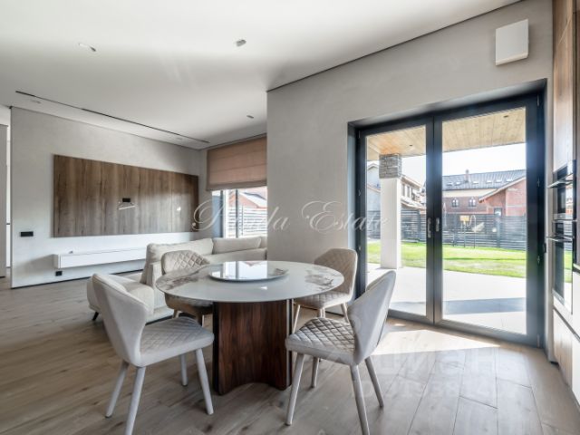 Коттедж подойдет для постоянного проживания большой семьи: 4 спальни, 3 санузла, кухня-гостиная с выходом на большую крытую террасу.