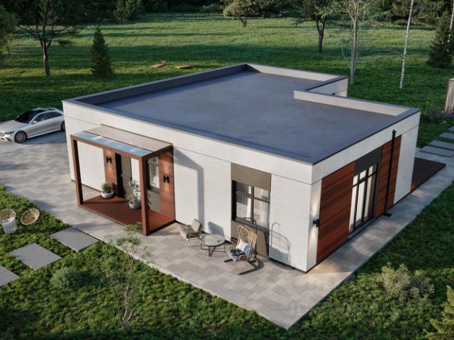 Дом построен в европейском стиле с панорамными окнам (в пол).